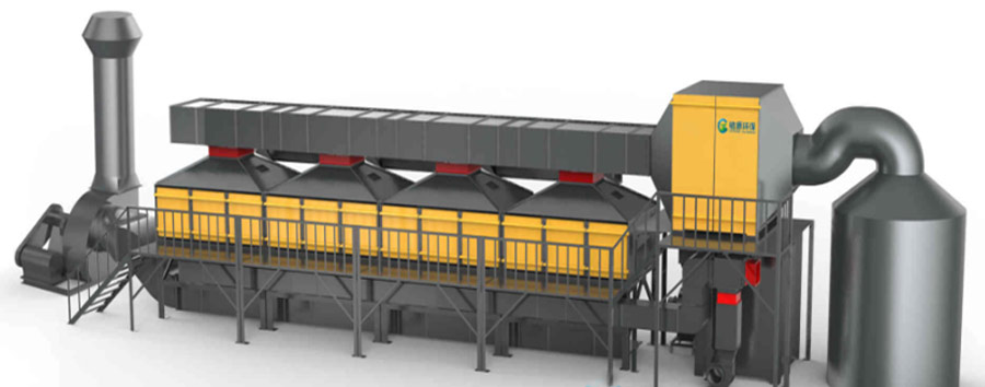 根據吸附(效率高)和催化燃燒(節能)兩個基本原理設計,采用雙氣路連續工作,一個催化燃燒室,兩個吸附床交替使用。先將有機廢氣用活性炭吸附,當快達到飽和時停止吸附,然后用熱氣流將有機物從活性炭上脫附下來使活性炭再生;脫附下來的有機物已被濃縮(濃度較原來提高幾十倍)并送往催化燃燒室催化燃燒成二氧化碳及水蒸氣排出。當有機廢氣的濃度達到2000mg/m3以上時,有機廢氣在催化床可維持自燃,不用外加熱。燃燒后的尾氣一部分排入大氣,大部分被送往吸附床,用于活性炭再生。這樣可滿足燃燒和吸附所需的熱能,達到節能的目的。再生后的可進入下次吸附;在脫附時,凈化操作可用另一個吸附床進行,既適合于連續操作,也適合于間斷操作。